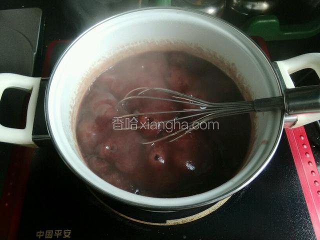4.中小火煮至粘稠状态,冒小泡离开火。