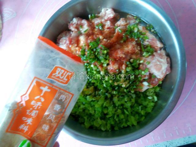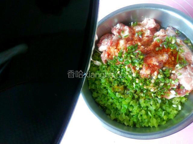4.芹菜沫,葱姜沫一起放入肉馅中