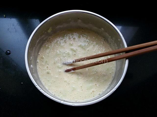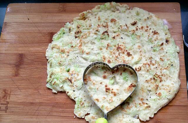 3.把鸡蛋打入面粉,放入盐和花椒面,再把卷心菜倒入面粉里。
