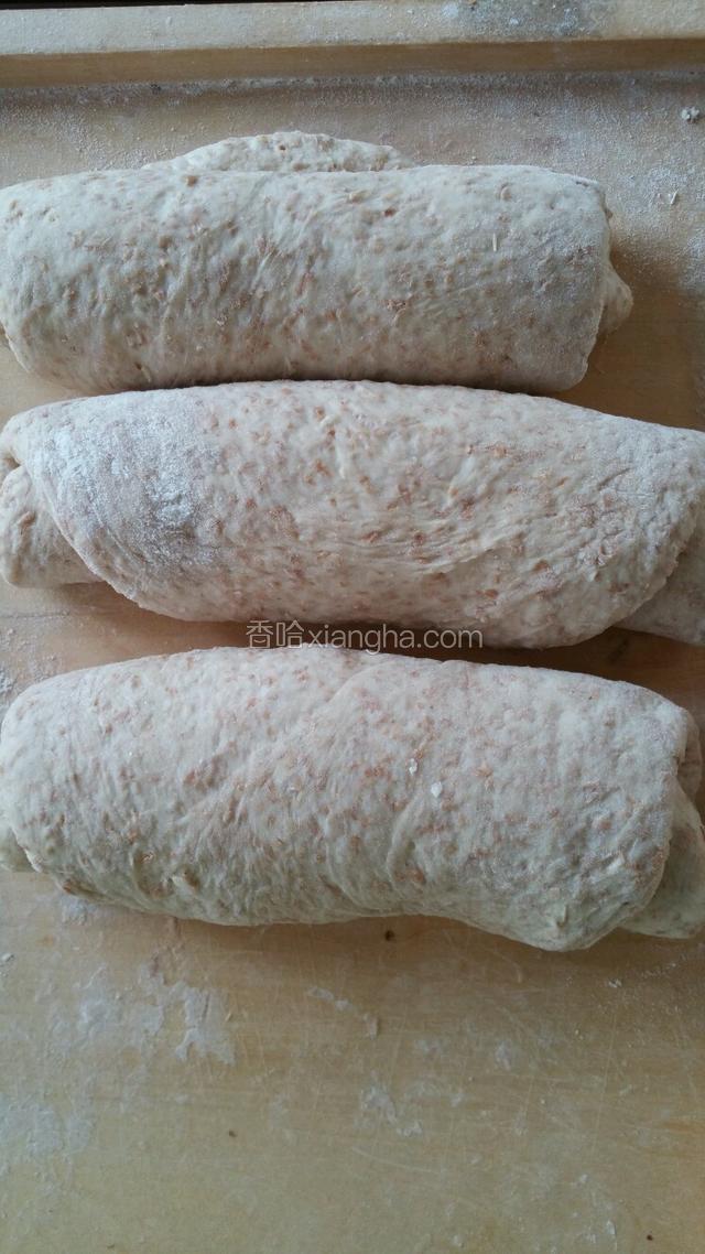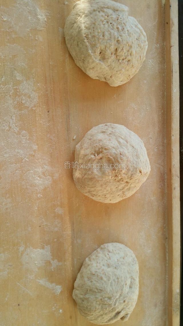 4.面团平均分成三份,轻压排气松弛10分钟