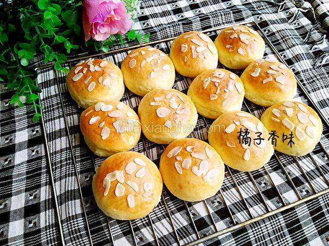 6.二次发酵完取出,刷蛋液,撒扁杏仁