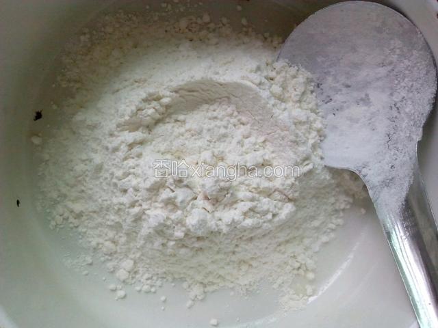 3.准备一个大碗加入四大勺面粉