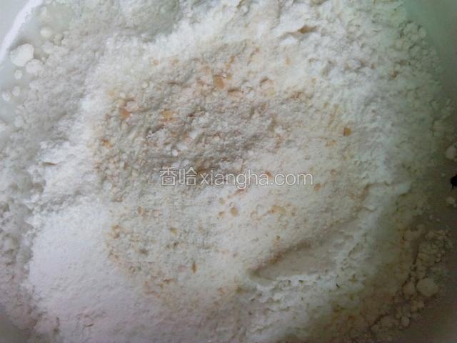 5.再把碾碎的小馒头倒进面粉里