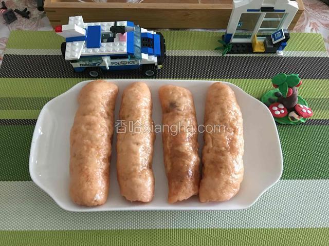 6.放上香肠卷起来就可以