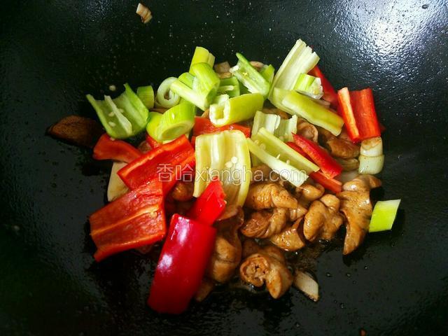 4.将葱切成段,青,红辣椒,姜切成片,泡椒切两半大蒜拍扁。