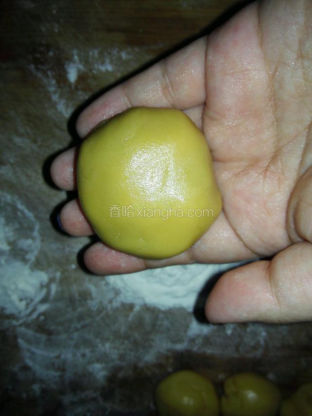 6.膜子上好,在干面粉上印一下,然后把面控下去。