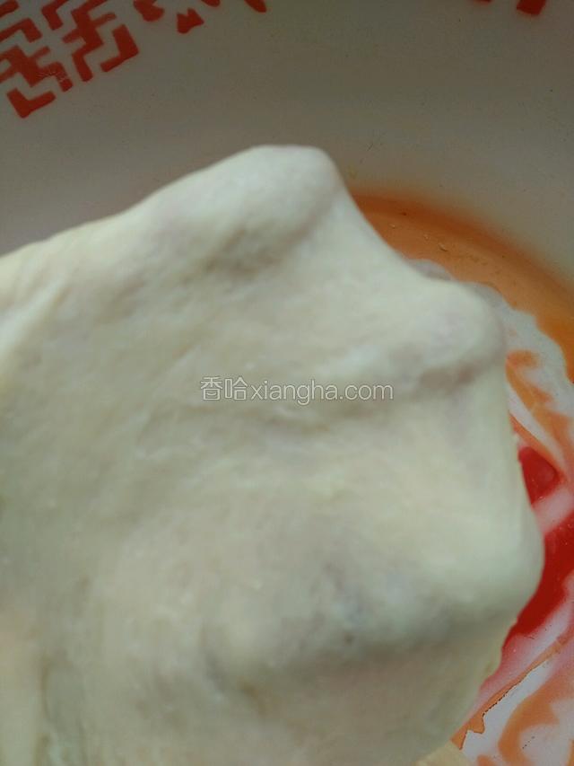 4.发酵至两倍半大小,用手指戳不回缩不塌陷,发酵完成