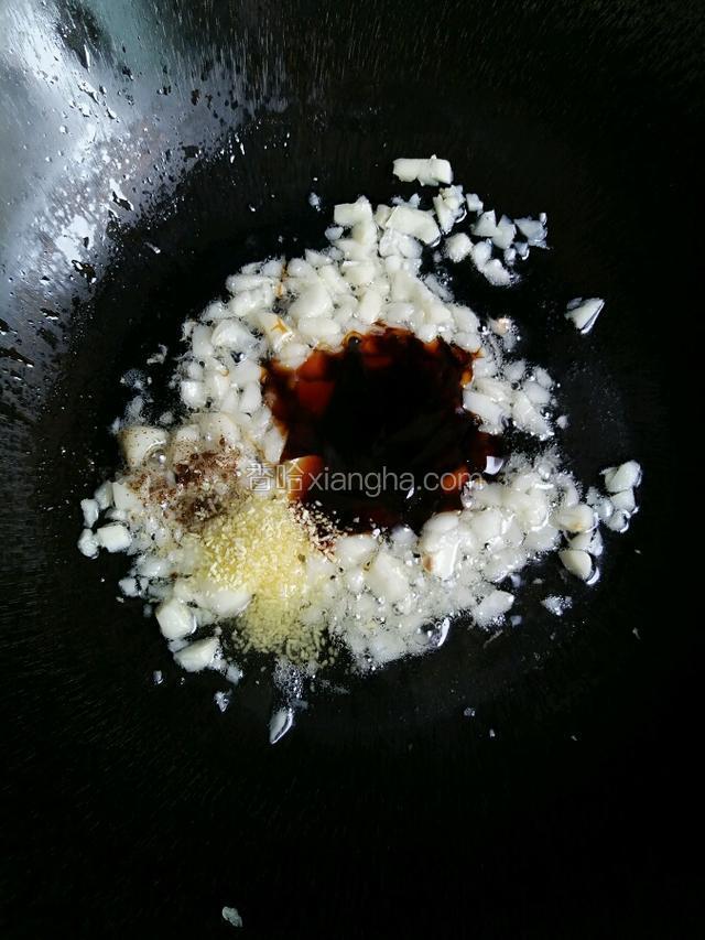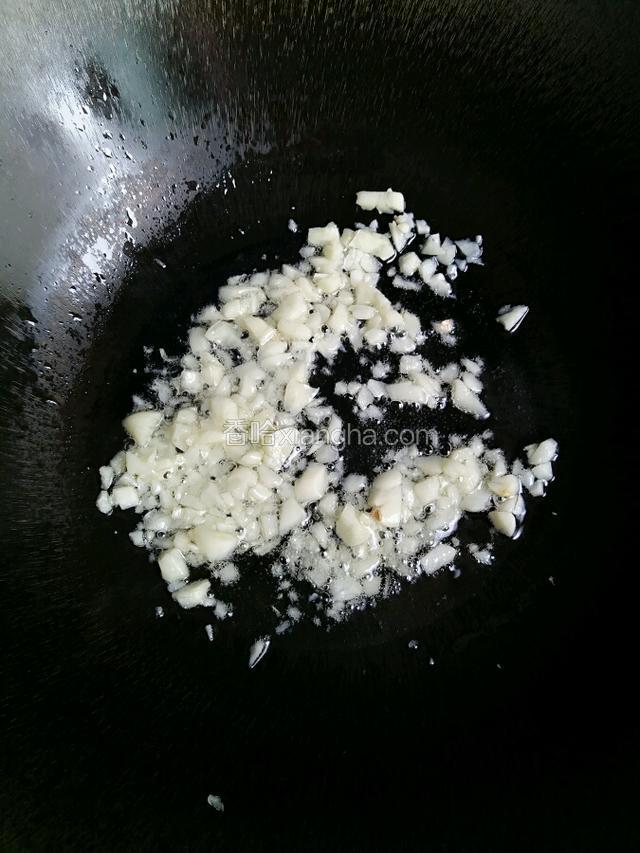 4.另起锅加入适量的油烧至7成熟倒入大蒜爆出香味儿