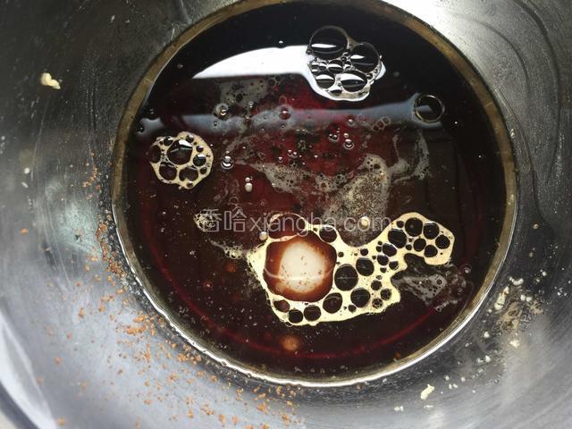 4.盆里倒入植物油,红糖水,盐混合均匀。