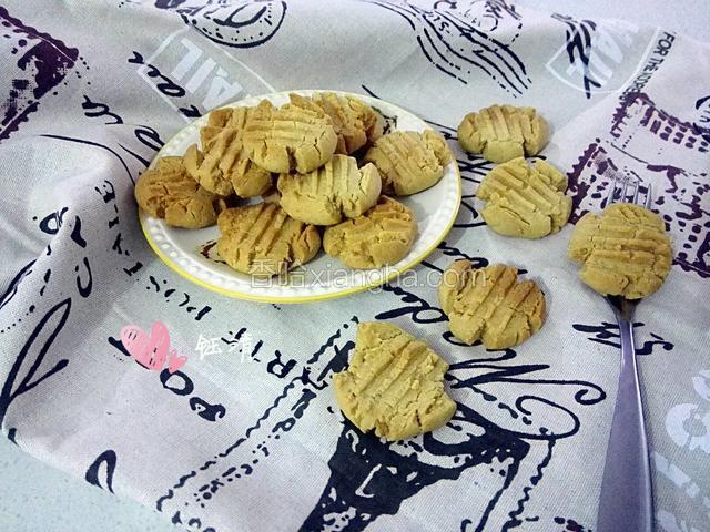4.分三次把花生酱加入的黄油和细砂糖中,每次搅拌均匀以后再加
