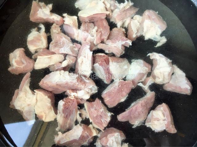 3.牛肉冷水下锅,水开后捞出冲洗一下,沥干水分。