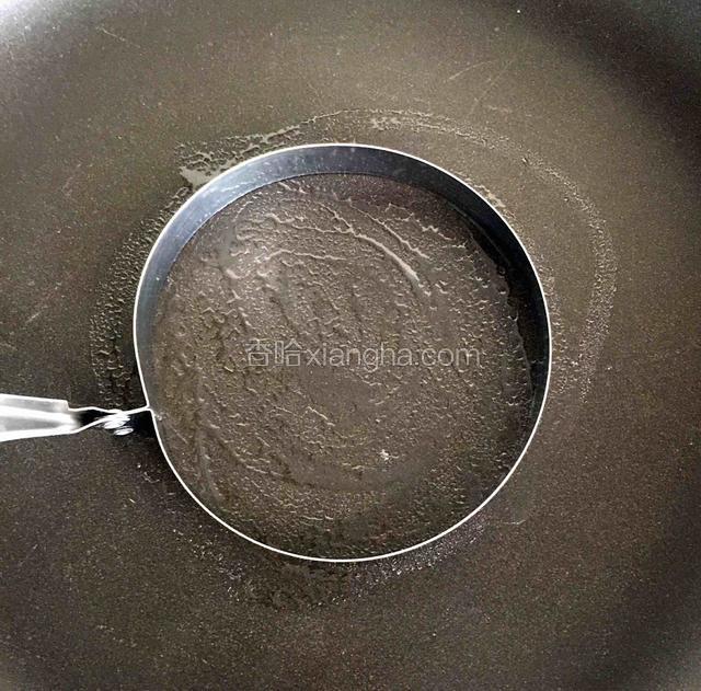 4.平底锅擦黄油,放一个煎饼模,开小火