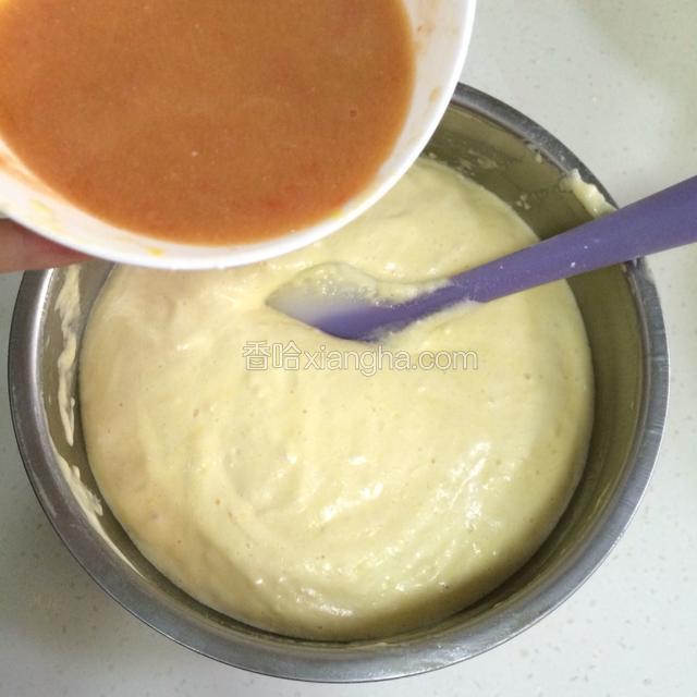 6.电动打蛋器慢慢加至高速搅打至细腻泡沫时加入1/3细砂糖。