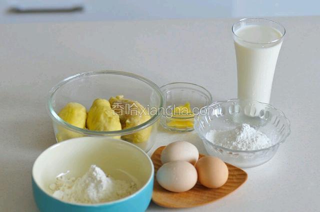 4.加入一半牛奶,均匀搅拌,再加入玉米淀粉和剩余的牛奶、低粉、隔水融化的黄油,均匀搅拌