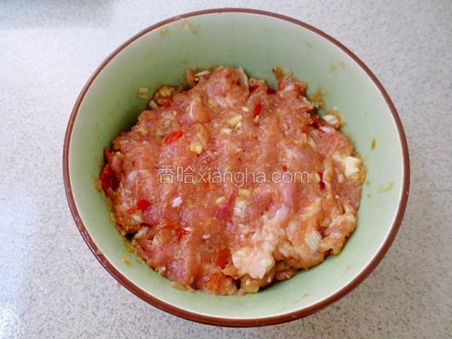 4.放入葱姜蒜末,加适量盐,酱油,胡椒粉,香油,料酒。