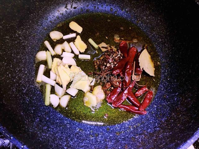 5.葱白切小段、姜切片、蒜切小块