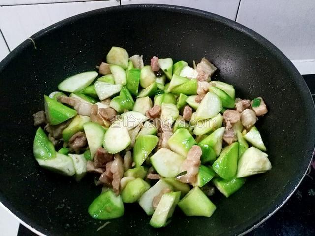 3.这是用少许盐和料酒,胡椒粉一起,腌制十几分钟的五花肉,