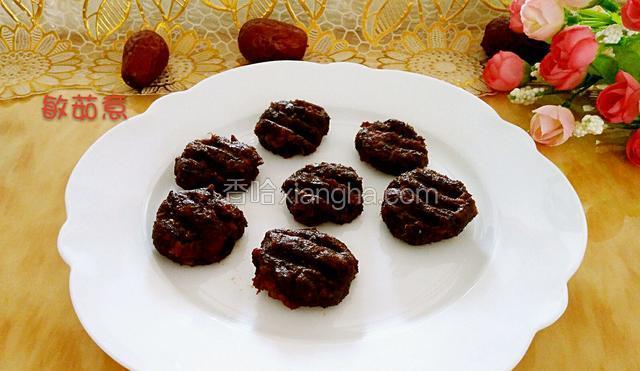 6.搅拌好的枣泥用手团成团能成形,就不再炒干了