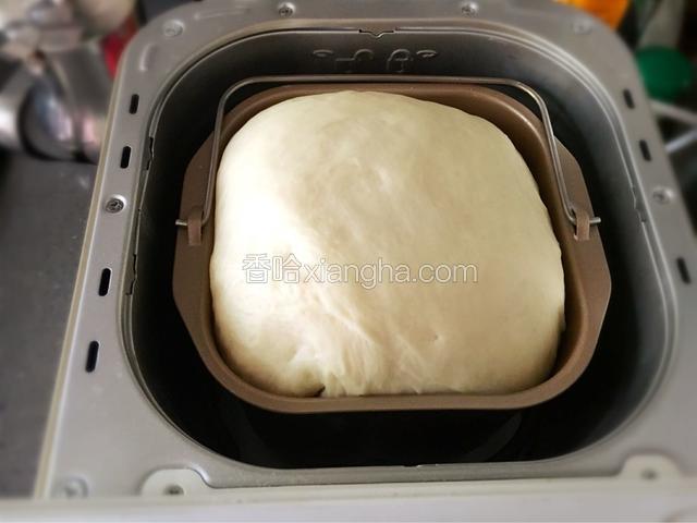 4.直接在面包机里发酵至2.5倍大。 面发好后,再起动揉面程序几分钟,给面团排气。