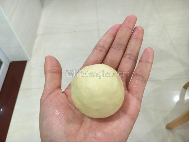 5.把面团中的空气挤出,把面团分成16份,揉圆并放在室温条件下醒发15分钟,盖上保鲜膜。
