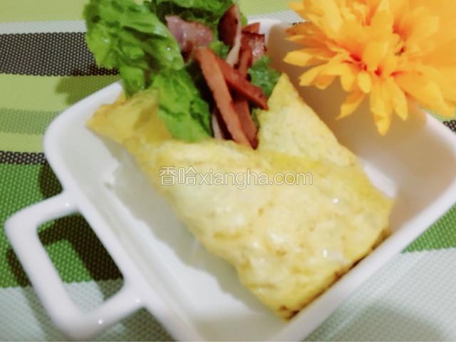 4.平底锅刷点油倒入一半的鸡蛋液