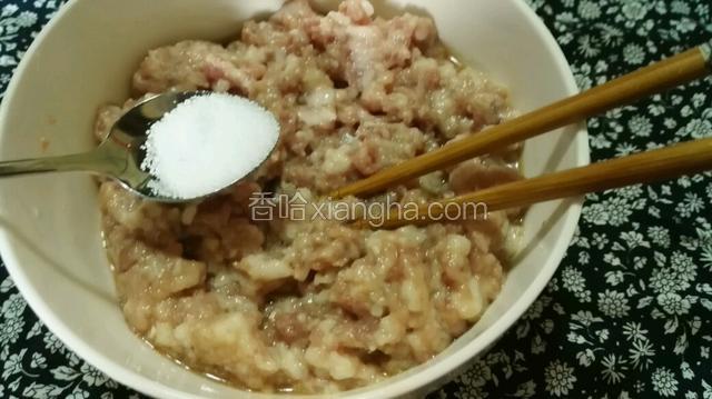 6.肉末放入碗内,加三勺料酒,去肉腥。