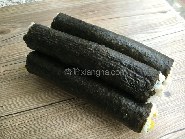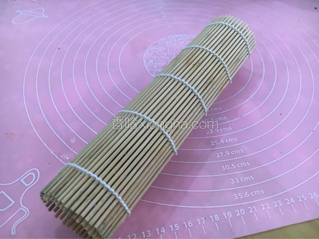 5.寿司帘洗净擦干 放在干净的砧板上 紫菜光滑面向下粗糙面向上放在寿司帘上