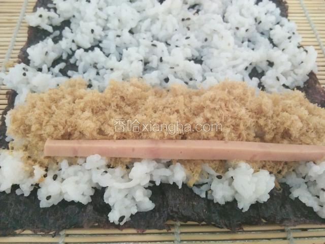 1.准备米饭,沙拉酱,盐,肉松,紫菜