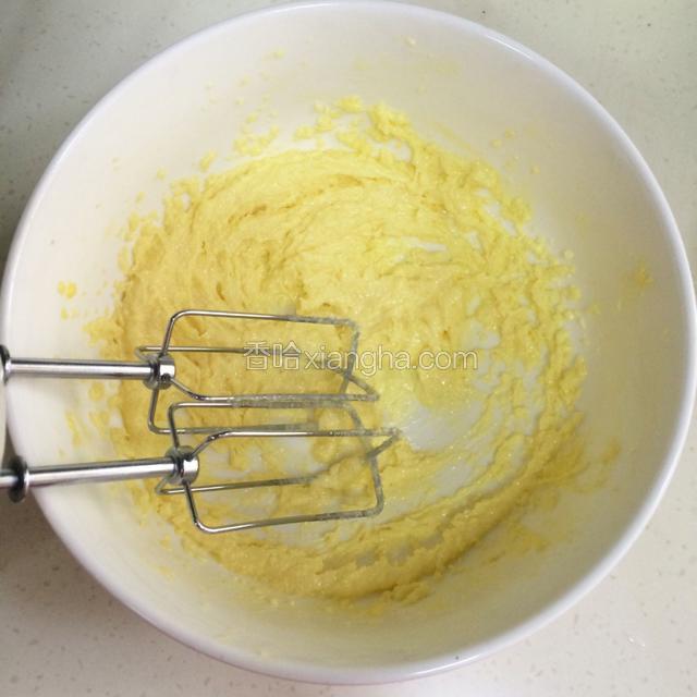 2.用电动打蛋器打至黄油体积变大,颜色略发白。