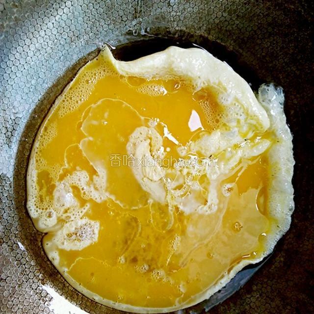 3.把锅烧干倒油烧热倒进鸡蛋液