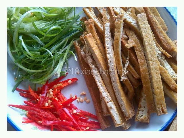 6.白菜,豆腐丝拌匀放上葱丝辣子