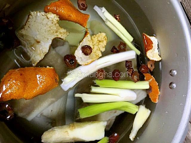 3.高压锅凉水加入牛肚,并加入 提前备好的作料。
