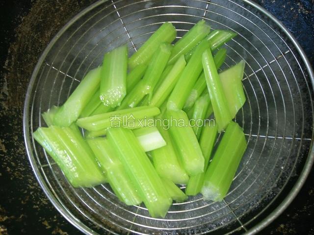 5.焯水的芹菜放入凉水中,过凉。捞出备用