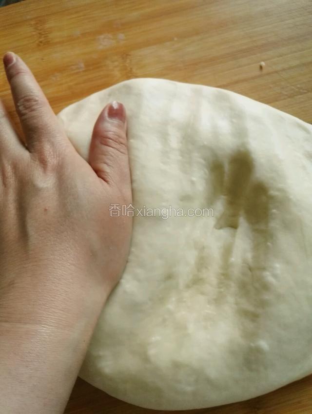 6.发好以后用手指蘸面粉捅面团不回缩就证明发好了