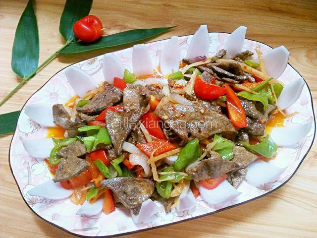 1.猪肝切薄片,加少许料酒,1勺生抽和2勺豌豆粉腌制15分钟