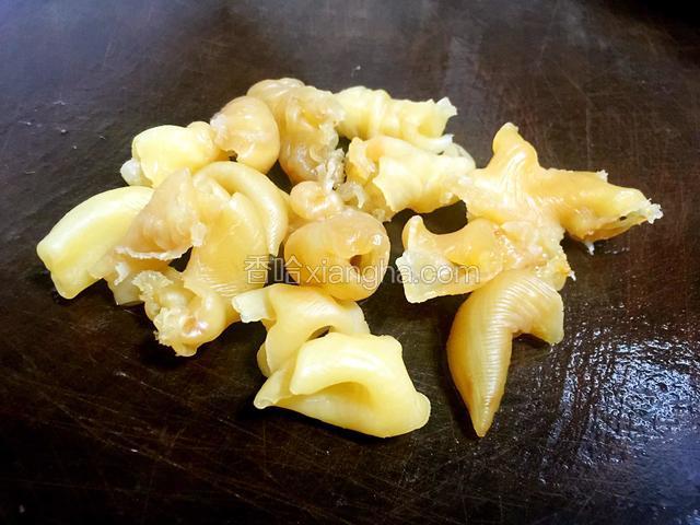 2.锅内放水烧开,滴几滴料酒,放几片姜丝,把花胶放入锅中煮1分钟。