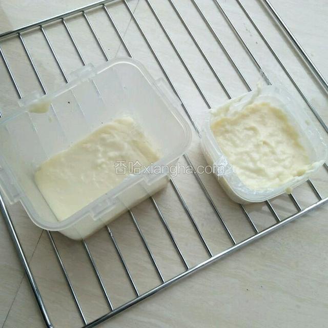 5.迅速地倒在提前铺好椰蓉的保鲜盒里(厚度自己定)。