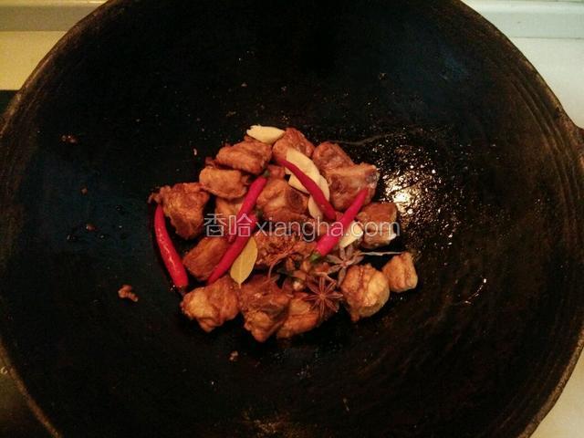 6.冷锅少油给冰糖炒糖色,小火锅铲划糖