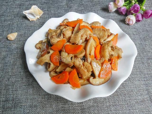 4.热锅放油、放姜爆香、放鸡肉炒至变色