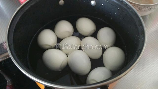 4.加入所有辅料,不需要加水,可以在鸡蛋上划几刀,容易入味,中火煮开转小火,不要走开,经常的晃动锅,以免粘锅