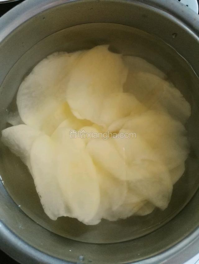 2.切好后放入盆中加适量水浸泡去除淀粉