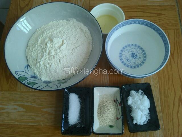 3.初橄榄油之外,原料放入容器活成一个光滑面团,加入橄榄油继续揉成一个光滑的面团。