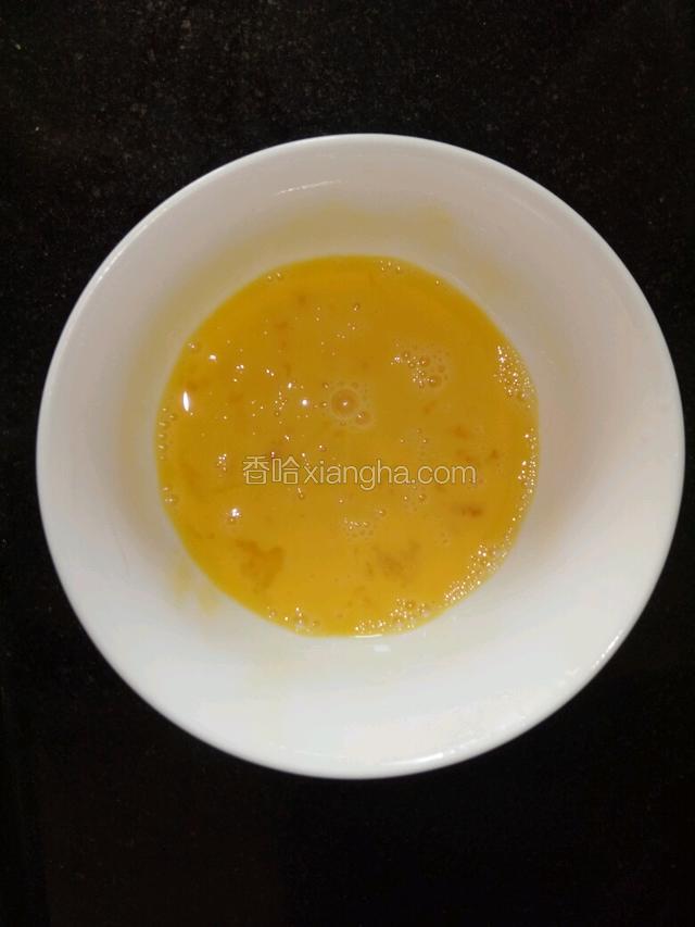 4.鸡蛋打在碗里搅散(2/3用作和面,剩余1/3留作涂抹面包表层)。