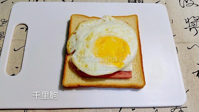 6.再放一个煎鸡蛋,已完成第一层的材料