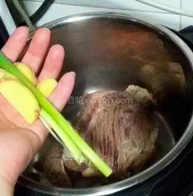 1.水中放葱姜料酒,把牛肉浸泡一个小时。