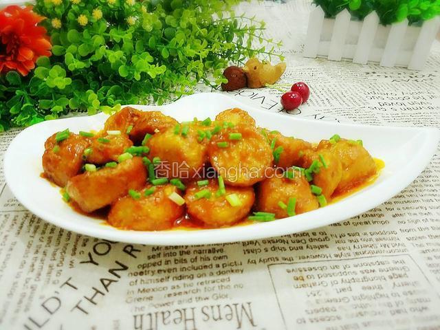 5.捞出炸好的芋头控油,放入盘子中。锅中油倒出来留底油。