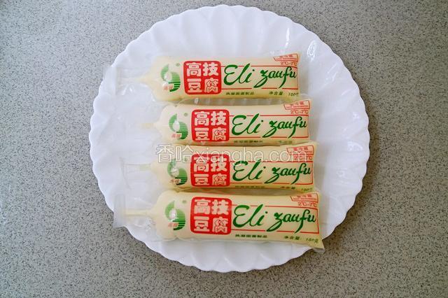 2.撕开豆腐包装,切块。 撕豆腐是个技术活,要想撕的好看又完整,臣妾做不到(⊙o⊙)哇!