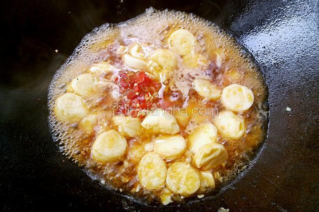 5.放入姜蒜末和辣椒末,倒一小碗清水,加入适量盐和生抽调味,小火焖5分钟。