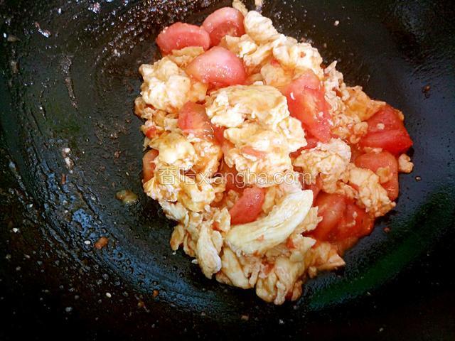 5.另起锅加油下番茄块翻炒,炒出番茄汁。加盐,糖,花椒粉翻炒均匀。