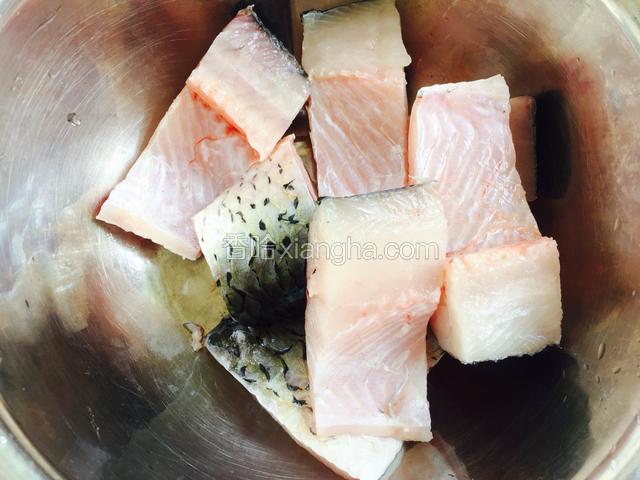 1.草鱼切成段,再把它们分开,切成一片一片的。